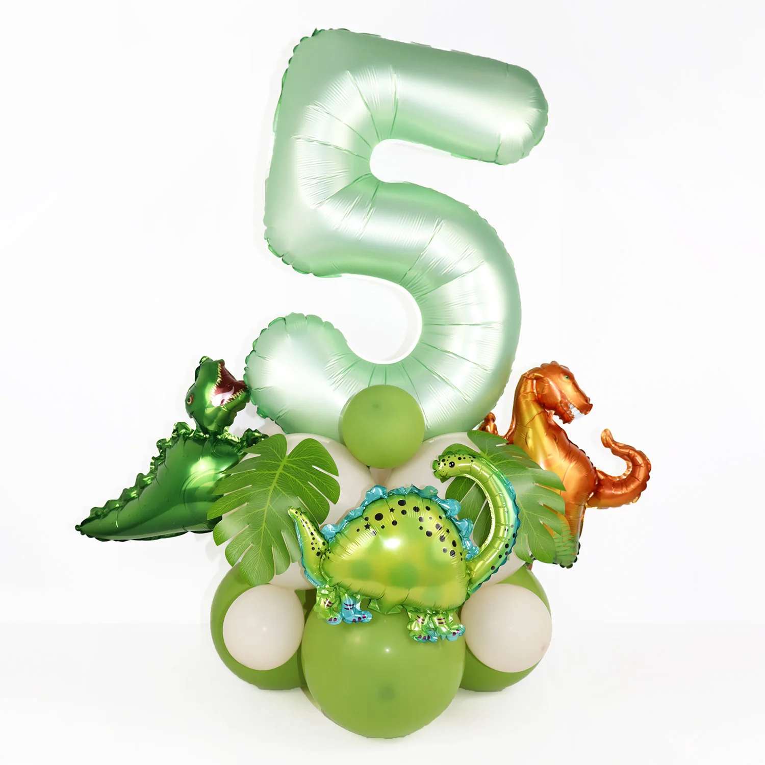 21pcs Dinosaur Birthday Decorations Avocado Green Number Dino Balloon Set Kids First Birthday Party Supplies Dinosaurios Globos