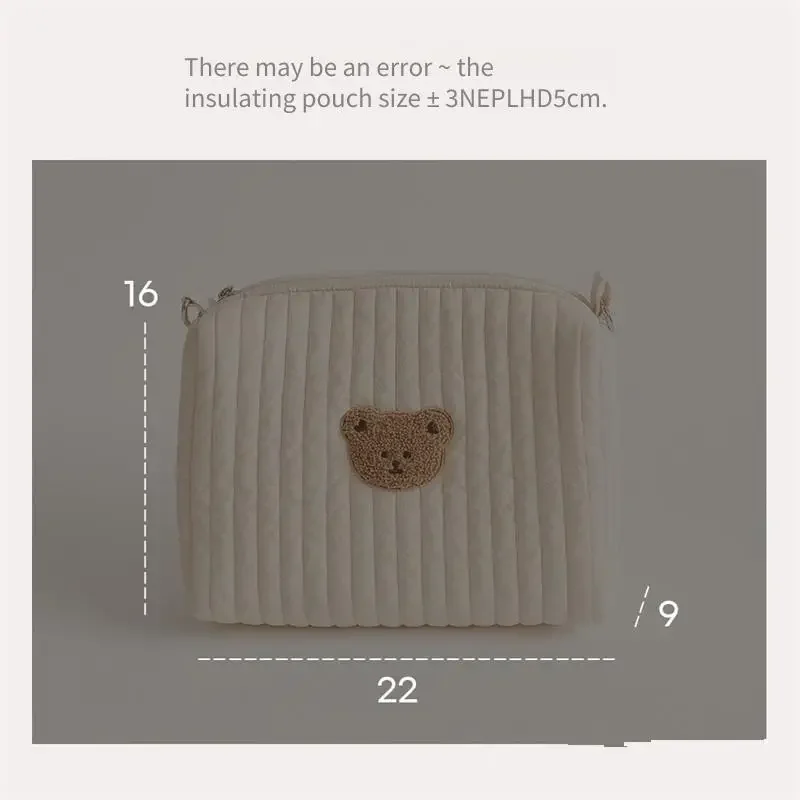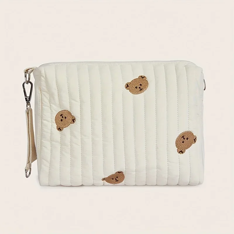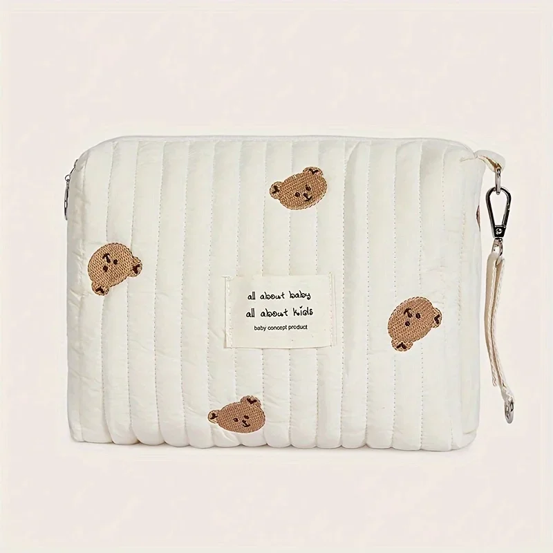 22X16X9CM Cute Bear Baby Carriage Bag Portable Diaper Storage Bag with Zipper Embroidery Easy to Clean Multifunctional Mommy Bag